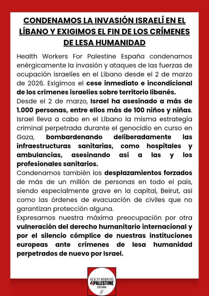 Declaración HW4PS de condena a Israel por su actividad en Líbano