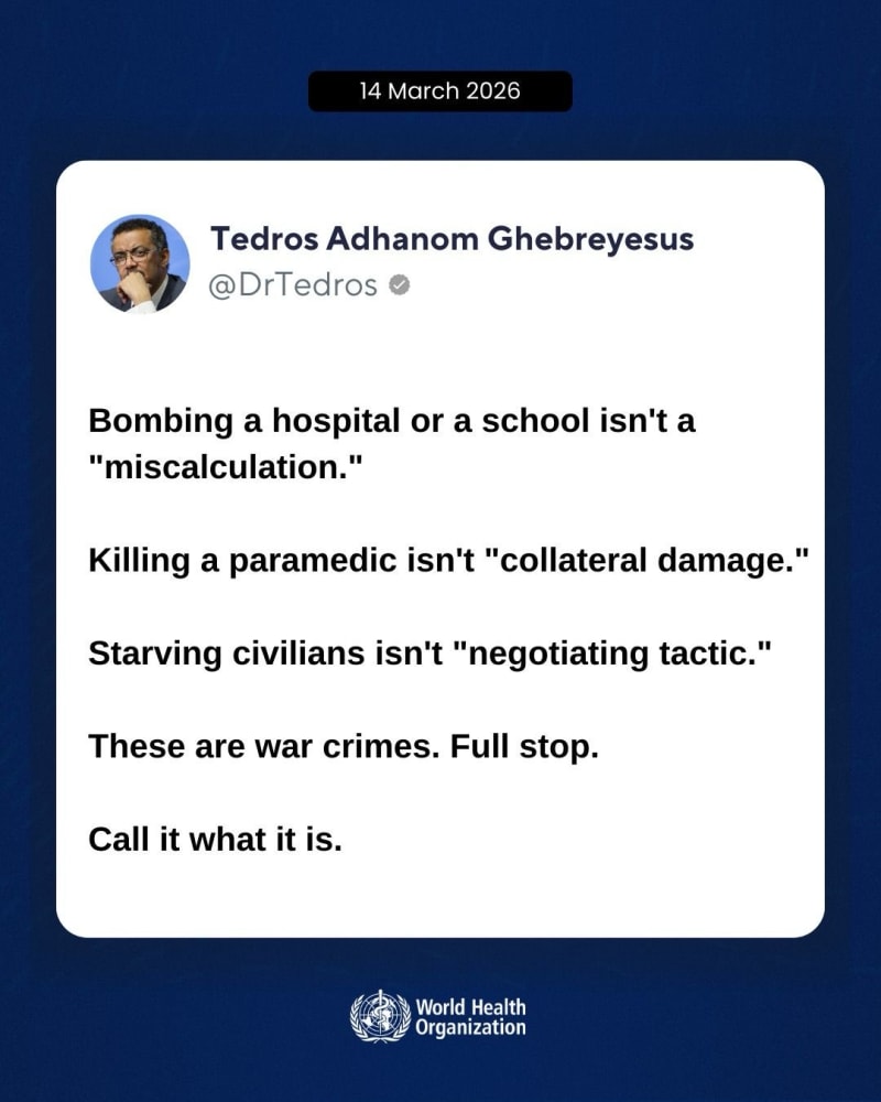 War crimes. Tedros Adhanom speaks clearly and loudly. El director de la OMS, claro y directo. Crímenes de guerra