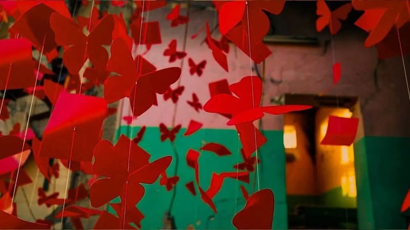 2.000 mariposas rojas se elevan desde los escombros de la Escuela Primaria Shajareh Tayyebeh de Minab, Irán