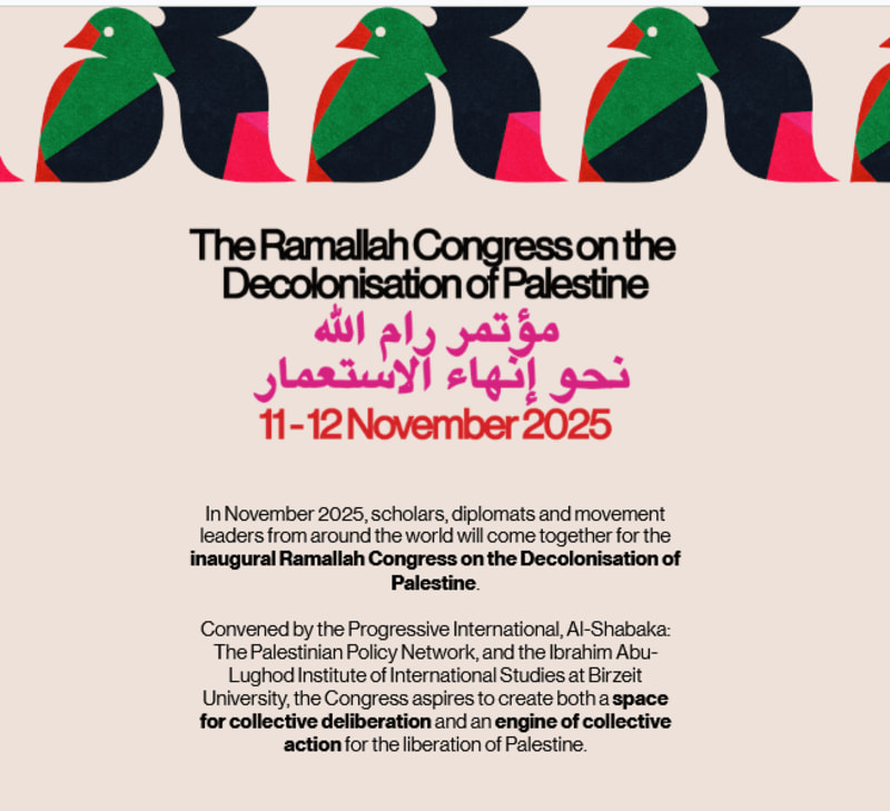 11-12 Nov 2025. Ramallah Congress on the Decolonisation of Palestine. Birzeit University. West Bank